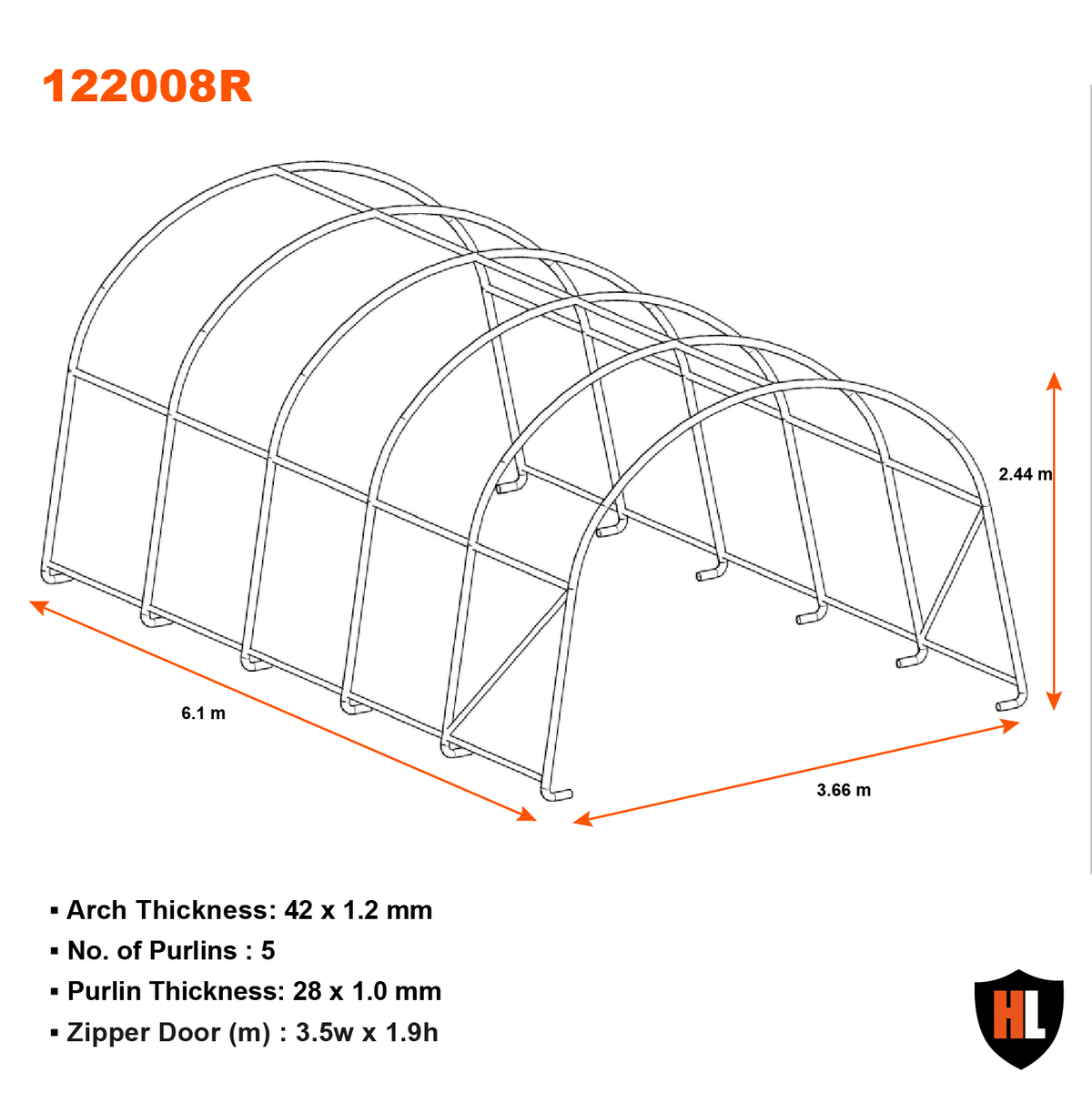 Hardlife will entertain requests for customisation of the Hardlife 122008R portable carport. Customised carports or replacement parts can be supplied on request, at an additional cost and longer delivery time.