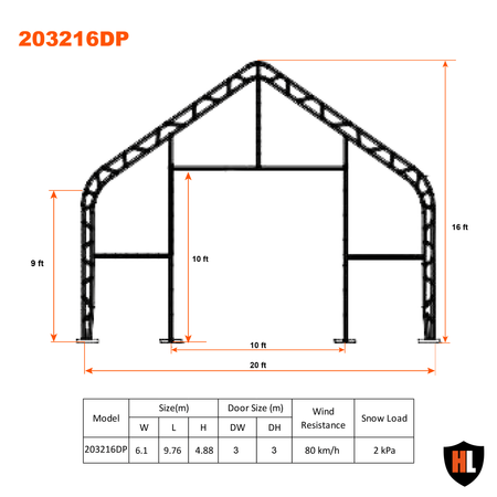 The Hardlife 20FT Series double trussed storage tents are extra tough, sturdy, and reliable. The double trussed steel frame is made of Q215 steel tubes and is specially designed for use in extreme weather. The tent fabric is made of heavy-duty PVC.