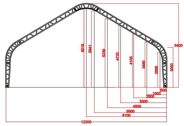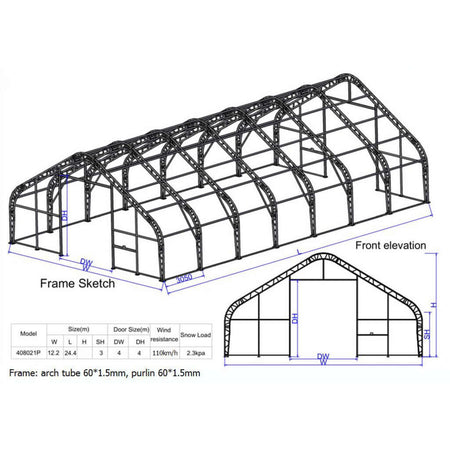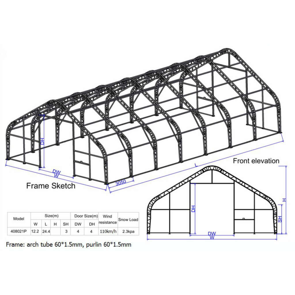 The Hardlife DT 40FT Series Double Trussed Storage Tents are extra tough, sturdy, and reliable. The double trussed steel frame is made of Q215 steel tubes and is specially designed for use in extreme weather. The tent fabric is made of heavy-duty PVC.