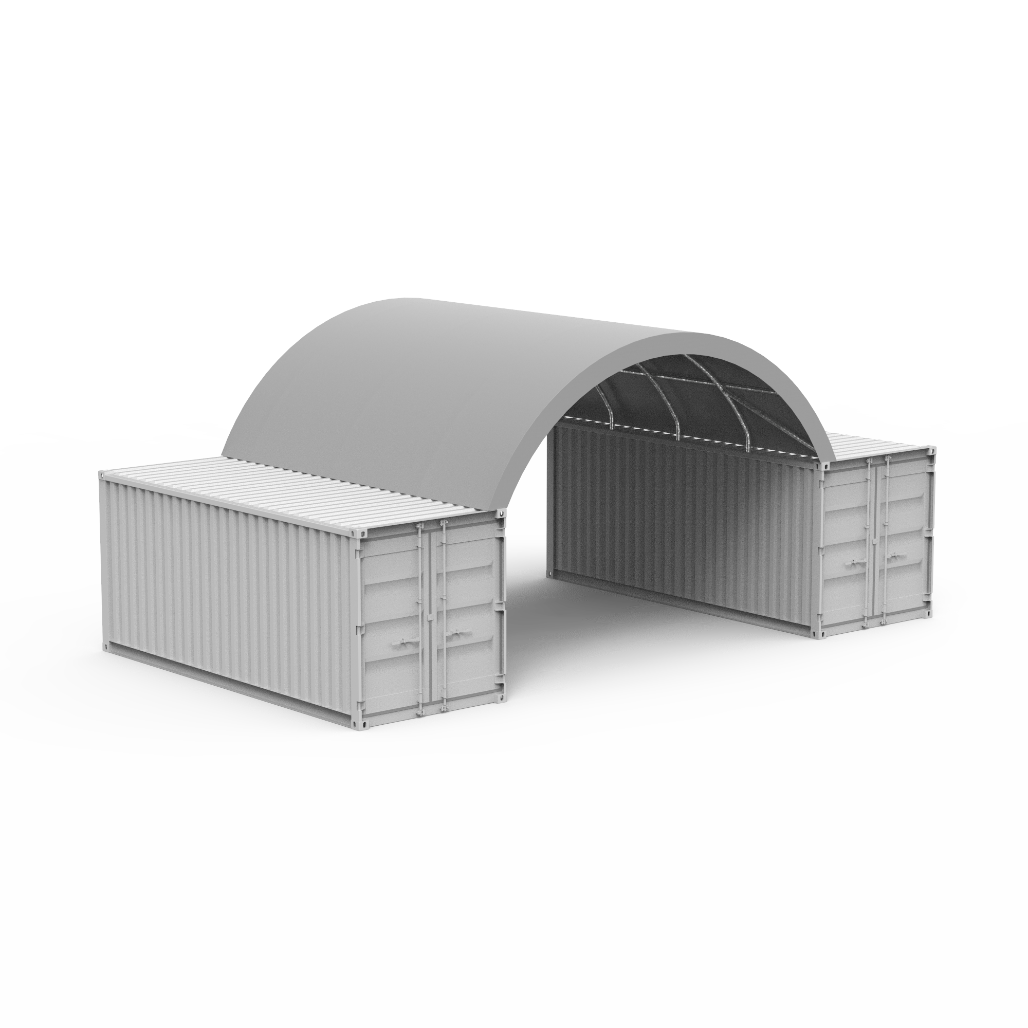 The C2020 container shelter creates a robust 20ft x 20ft storage area for long term outdoor use. Mountable on shipping containers, lego blocks or any other frames it's quick and easy to install with optional end panels available for 360° protection.