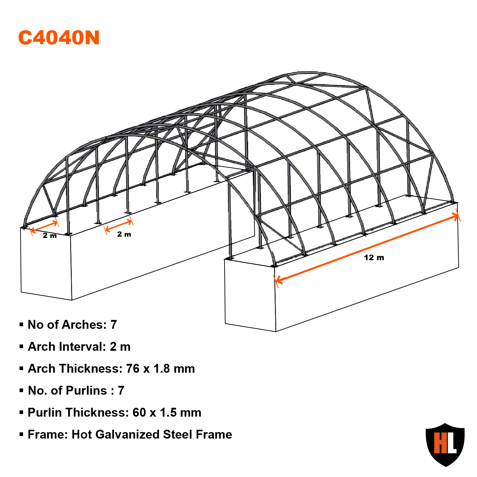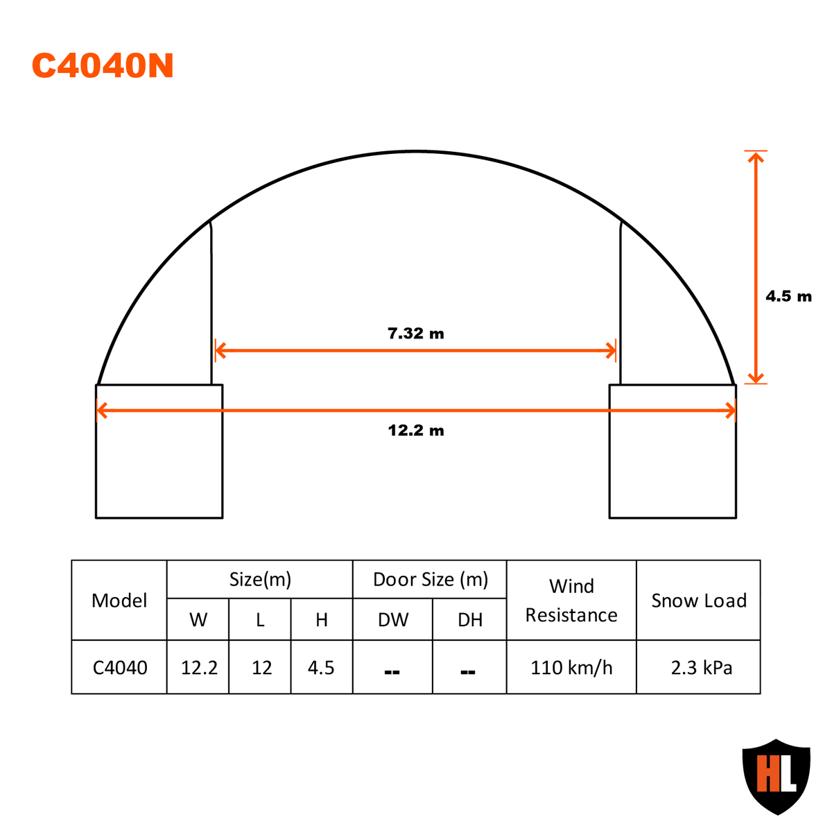 The Hardlife C4040N Container Shelters are extra-large, extra-sturdy, affordable, durable, and versatile storage solutions that are designed to maximise space and protect goods, vehicles, and machines in inclement weather. The Hardlife range of container shelters features a sturdy, hot-galvanised steel frame made of Q215 steel tubes and heavy-duty PVC fabric.